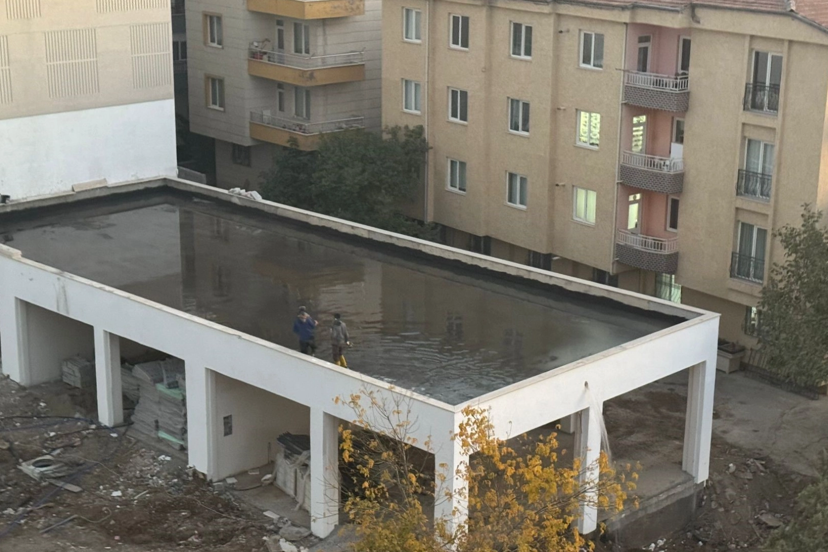 Olay, Yeşilyurt ilçesi Tevfik Temelli caddesi üzerinde bulunan bir rezerv alanda meydana geldi. Yağışlar nedeniyle bölgede yapımı süren tek katlı bir iş yerinin üst kısmı suyla doldu. İnşaatın adeta havuza dönüştüğü olayda, suyun tahliyesi için duvarda delik açıldı. Delik aracılığıyla suyun tahliye edilmesi için iki işçi tarafından çalışma yapılırken, işçilerin, yaşananlar çevredeki bir vatandaş tarafından cep telefonu kamerasıyla kaydedildi.