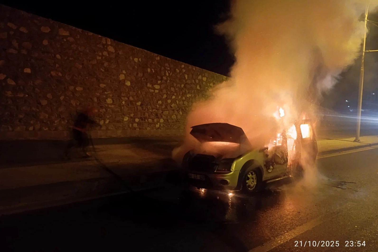 Edinilen bilgilere göre, bölgede seyir halinde olan Ü.S. idaresindeki 44 LT 627 plakalı hafif ticari araç seyir halindeyken henüz belirlenemeyen bir nedenle alev aldı. İhbar üzerine olay yerine itfaiye ekipleri sevk edilirken söndürülen yangında araç kullanılmaz hale geldi.