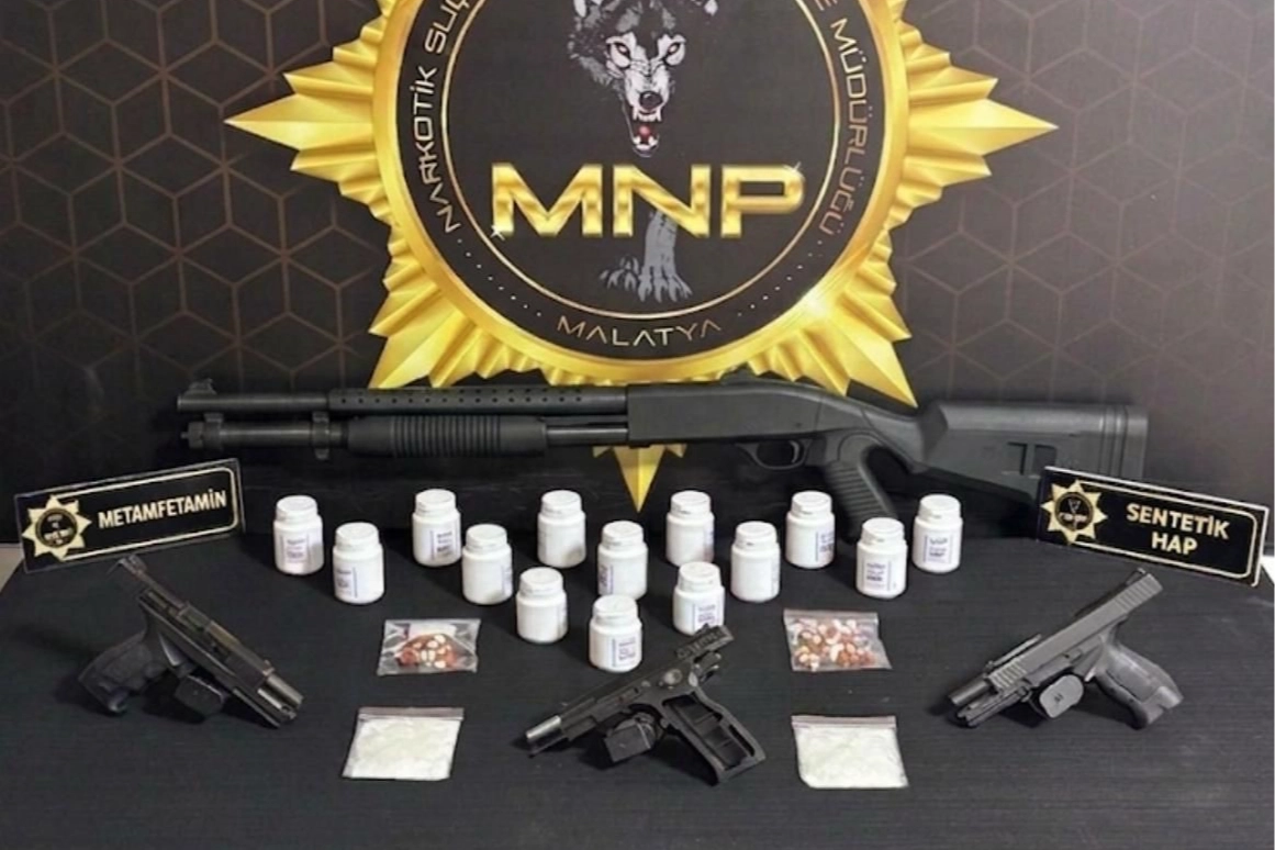 Malatya'da, İl Emniyet Müdürlüğü'ne bağlı Narkotik Suçlarla Mücadele ile Kaçakçılık ve Organize Suçlarla Mücadele Şube Müdürlüğü ekiplerince uyuşturucu madde ticareti ve silah kaçakçılığına yönelik operasyon düzenlendi. Belirlenen 3 adreste eş zamanlı yapılan aramalarda 812 adet sentetik ecza, 37 gram metamfetamin maddesi, 3 adet ruhsatsız tabanca, 1 adet ruhsatsız tüfek ele geçirilirken, 3 zanlı gözaltına alındı.