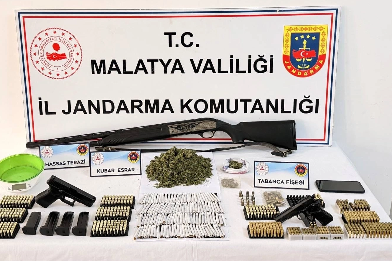 Malatya'da İl Jandarma Komutanlığı ekipleri, uyuşturucu madde ticareti yapan şüphelilere yönelik operasyon düzenledi. Çalışmalarda 700 gram kubar esrar, 120 adet fişek, 9 gram kenevir tohumu, 2 ruhsatsız tabanca, 1 ruhsatsız av tüfeği, bin tabanca fişeği, 5 tabanca şarjörü, 1 hassas terazi ve 1 cep telefonu ele geçirildi. M.K.'nın gözaltına alındığı olayla ilgili tahkikat devam ediyor.