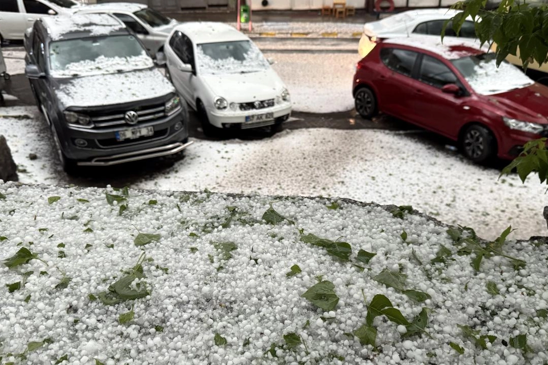 Ardahan'da akşam saatlerine doğru başlayan sağanak, yerini doluya bıraktı.Kısa süreli yağışın ardından etraf beyaza büründü, park halindeki araçların üzeri dolu taneleriyle kaplandı.