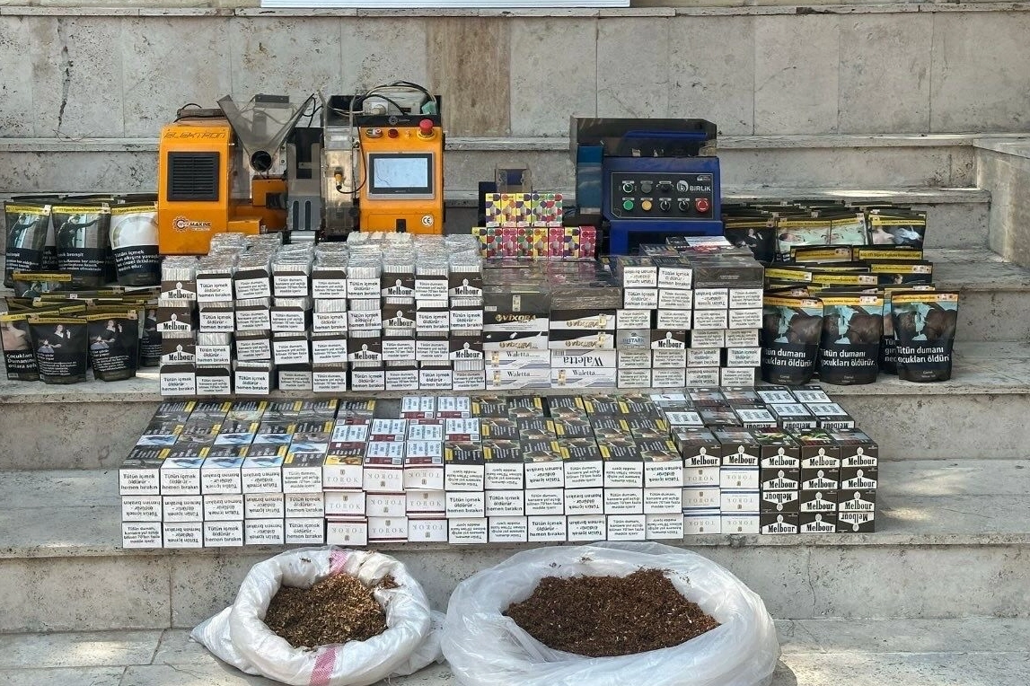 Aramalarda; 2 adet tütün sarma makinesi, 67 bin 832 adet sarılmış sigara, 88 bin 600 adet boş makaron ve 25 kilogram kıyılmış tütün ele geçirildi.