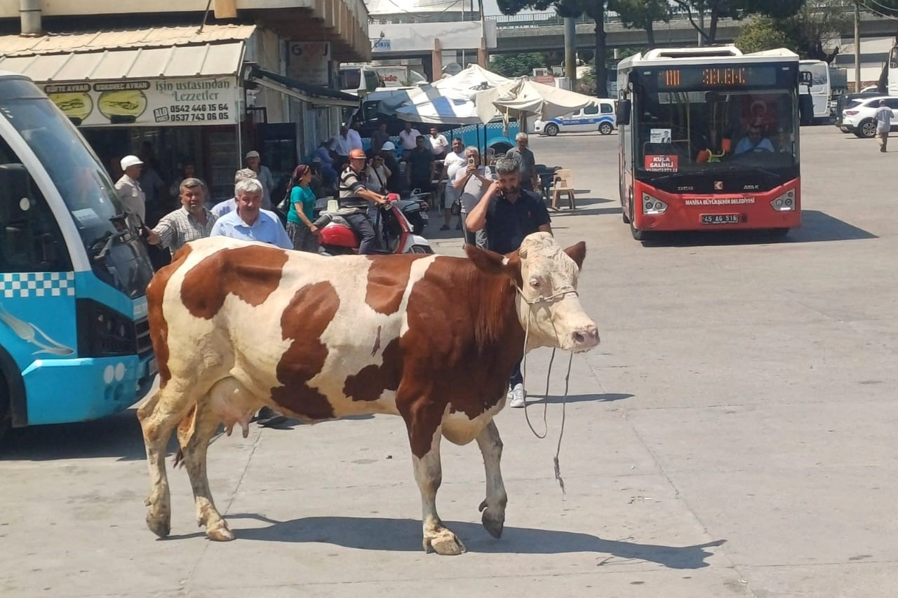 Kesim için Salihli Mezbahası'na götürülen inek, sahibinin elinden kaçtı. Mezbahadan kaçan inek, otogara kadar yakalanamadı. Salihli Otogarında 2 motosiklet ve 1 resmi araca zarar veren inek, Salihli Belediyesi Veteriner İşleri Müdürlüğü ekipleri tarafından uyuşturucu iğneyle sakinleştirilmeye çalışıldı.