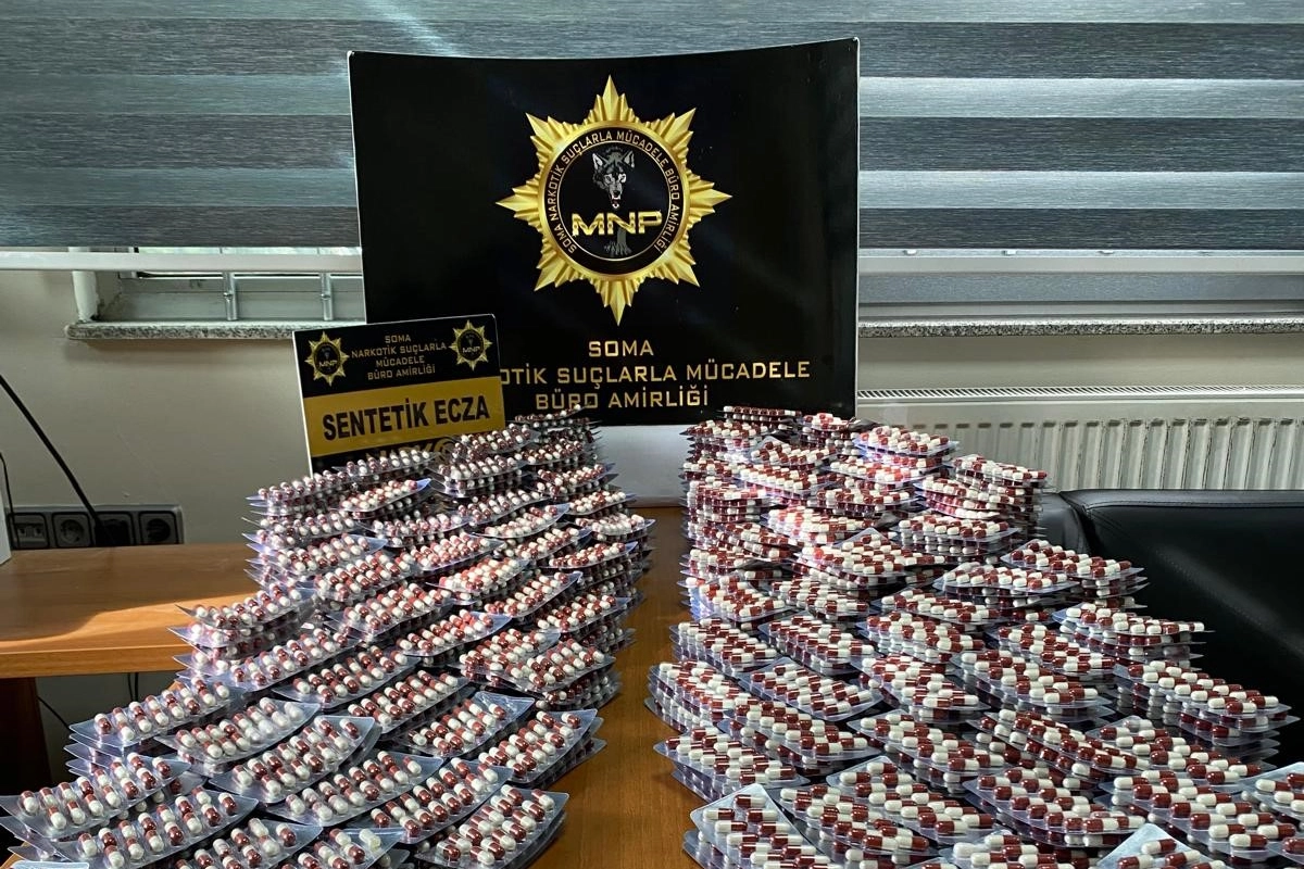 Manisa İl Emniyet Müdürlüğü Narkotik Suçlarla Mücadele Şube Müdürlüğü ile Soma Narkotik Suçlarla Mücadele Büro Amirliği ekiplerince, "Uyuşturucu veya Uyarıcı Madde İmal ve Ticareti" yapan şahıslara yönelik yürütülen çalışmalar kapsamında 789 tablet halinde toplam 11 bin 40 adet sentetik ecza hap, 27 parça halinde toplam 445,58 gram kokain maddesi, 1 adet çalışır vaziyette hassas terazi, 1 adet silah, şarjör ve 3 adet 9x19 fişek ele geçirildi.