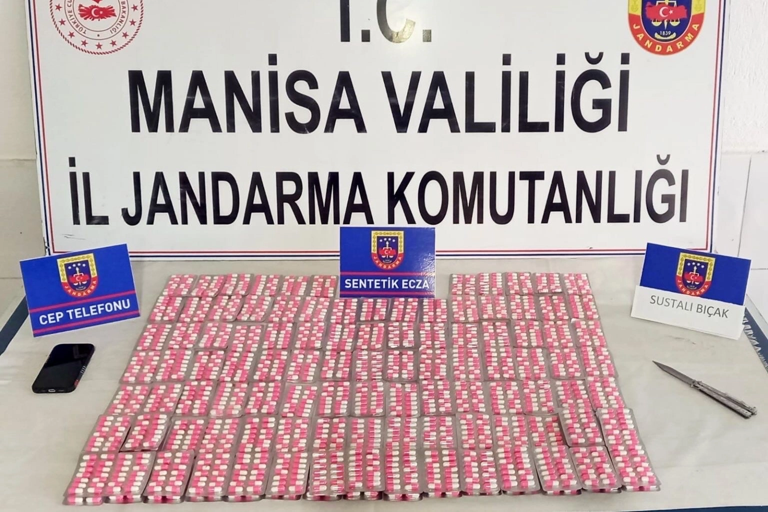 Edinilen bilgilere göre, Manisa İl Jandarma Komutanlığı İstihbarat ve KOM Şube Müdürlüğü ile Soma İlçe Jandarma Komutanlığı ekiplerinin koordineli çalışması sonucu, Y.K. (25) isimli şahsın üzerinde ve ikametinde arama yapıldı. Yapılan aramalarda toplam 2 bin 860 adet sentetik ecza hap, 1 adet bıçak ve 1 adet cep telefonu ele geçirildi.