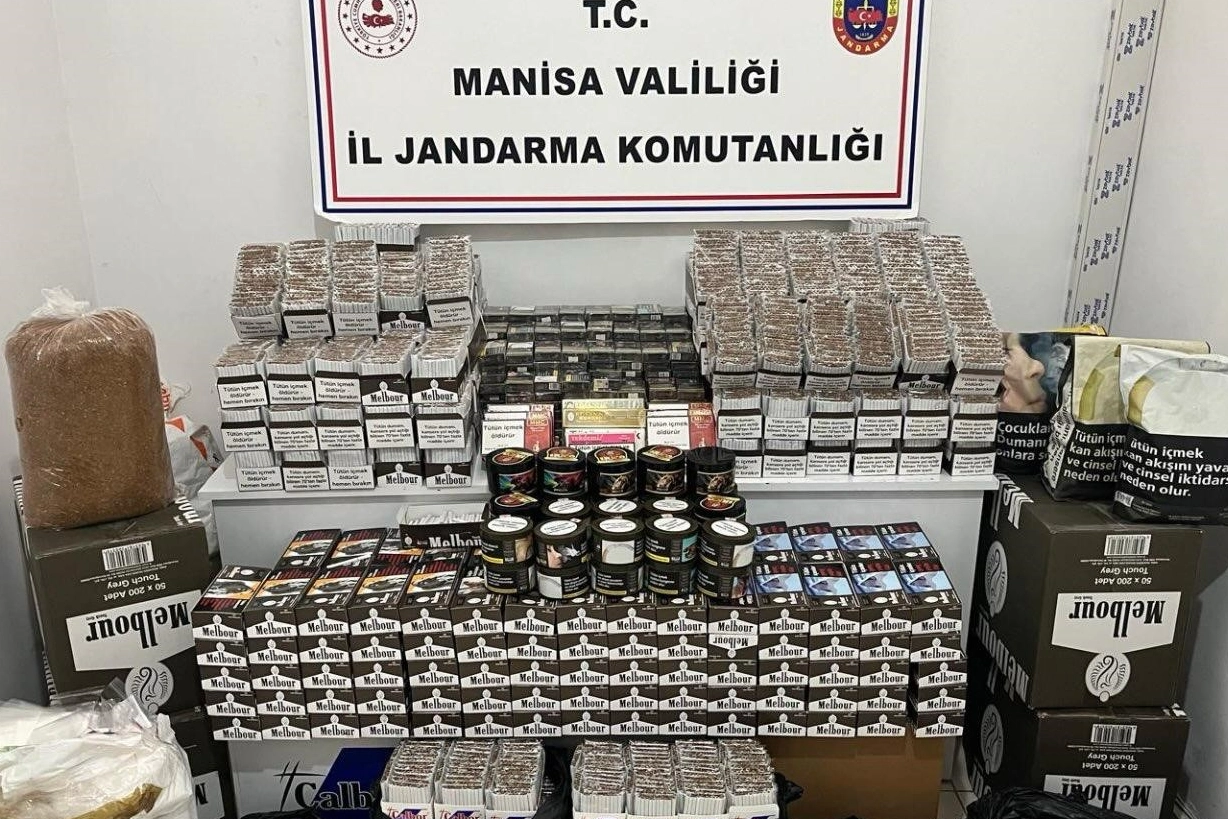 Manisa İl Jandarma Komutanlığı KOM Şube Müdürlüğünce yapılan çalışmalar neticesinde Yunusemre ilçesinde KOM Şube Müdürlüğü ve Yunusemre İlçe Jandarma Komutanlığı ekiplerince E.H. (41/E) ve E.H. (42/K) isimli şahısların evinde ve M.A. (34/E) isimli şahsın işyerinde yapılan aramada; 288 bin 760 adet içi tütün doldurulmuş makaron sigara, 22 bin 400 adet boş makaron, 19 kilogram açık sarmalık kıyılmış tütün, 196 bin 450 kilitli poşet, 55 kilogram nargile tütünü ele geçirildi.