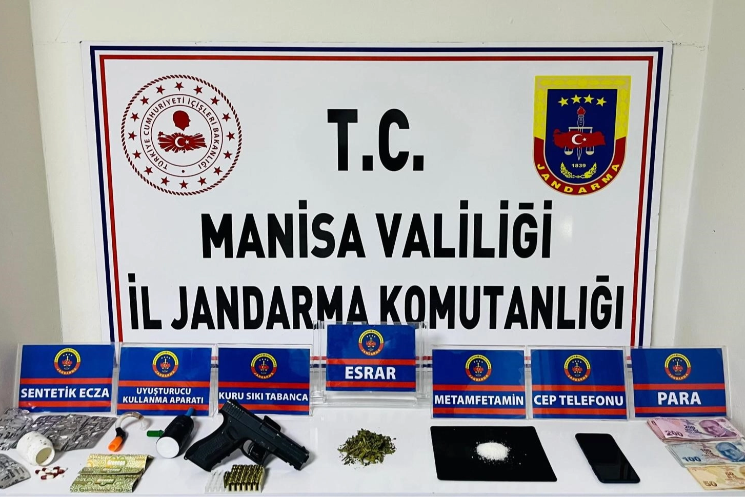 Salihli Cumhuriyet Başsavcılığı koordinesinde JASAT ve Sart Karakol ekiplerince düzenlenen operasyonda, şüphelinin evinde yapılan aramalarda; metamfetamin, kubar esrar, uyuşturucu hap, zıvana ve çarşaf, uyuşturucu kullanma aparatı, kurusıkı tabanca, cep telefonu ve uyuşturucu satışından elde edildiği değerlendirilen 6 bin 520 lira ele geçirildi.