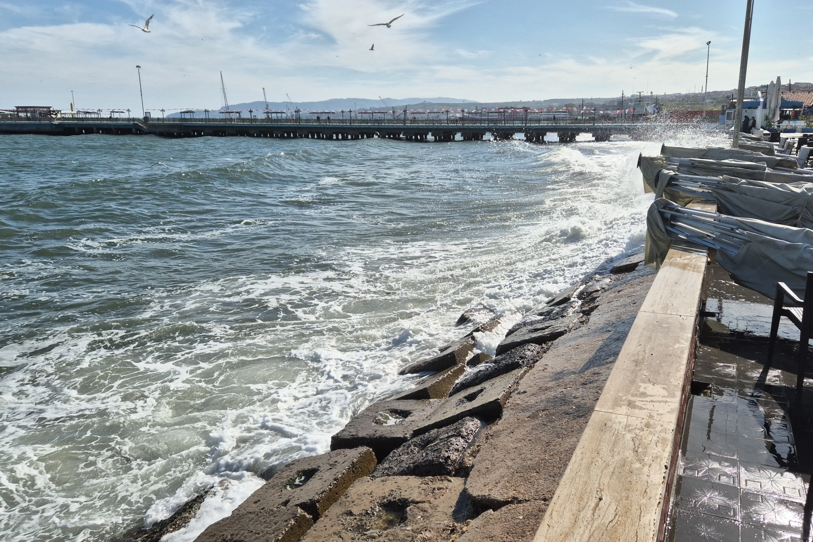 Tekirdağ kıyılarında dünden itibaren etkili olan şiddetli poyraz nedeniyle rüzgarın hızı zaman zaman saatte 80 kilometreye kadar ulaştı. Şiddetli rüzgar ve yüksek dalgalar sebebiyle küçük tekne balıkçıları denize açılamadı. Uluslararası yük taşımacılığı yapan büyük gemiler ise Tekirdağ açıklarında demirleyerek fırtınanın dinmesini beklemeye başladı.Öte yandan, Tekirdağ'ın sahil bölgelerinde dalgaların kıyıya vurduğu, vatandaşların sahil yürüyüşlerinden uzak durduğu gözlendi. Meteoroloji yetkilileri, kuvvetli rüzgar ve fırtına nedeniyle denizcileri ve vatandaşları dikkatli olmaları konusunda uyardı. Rüzgarın etkisinin önümüzdeki günlerde kademeli olarak azalması bekleniyor.