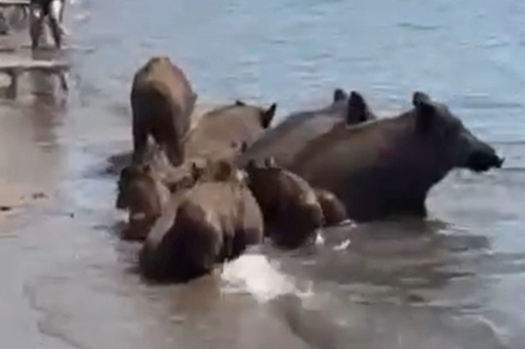 Marmaris şehir merkezinde toplanmayan çöpleri karıştıran yaban domuzları sıradan hale gelirken, domuzların bu seferki durağı sahiller oldu. Siteler Mahallesi'nde yaban domuzları tatilcilerin şaşkın bakışları arasında sahilde dolaştı. Yavrularıyla birlikte sahil boyunca yiyecek arayan domuzlar, daha sonra denize girdi. Plajda gezen domuzlar, denizde bir süre vakit geçirdikten sonra sahilden ayrıldı. Turistler ise yaşanan ilginç anları cep telefonlarıyla kaydetmeyi ihmal etmedi.