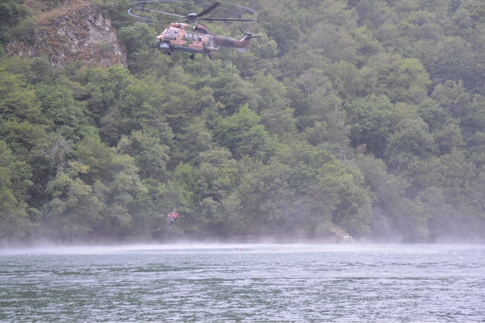 Pilot, arama - kurtarma ihtisaslı personel, uçuş tabibi ve uçuş teknisyeninden oluşan timi taşıyan helikopter, üstten havalanarak Taşova ilçesindeki Boraboy Gölü Tabiat Parkı'na ulaştı. Burada derin suyun içinde mahsur kalan bir vatandaş, zodyak bottan atlayan personel tarafından kurtarılarak sarkıtılan vinç yardımıyla helikoptere çıkartılıp ilk yardım müdahalesinin peşinden hastaneye ulaştırıldı.