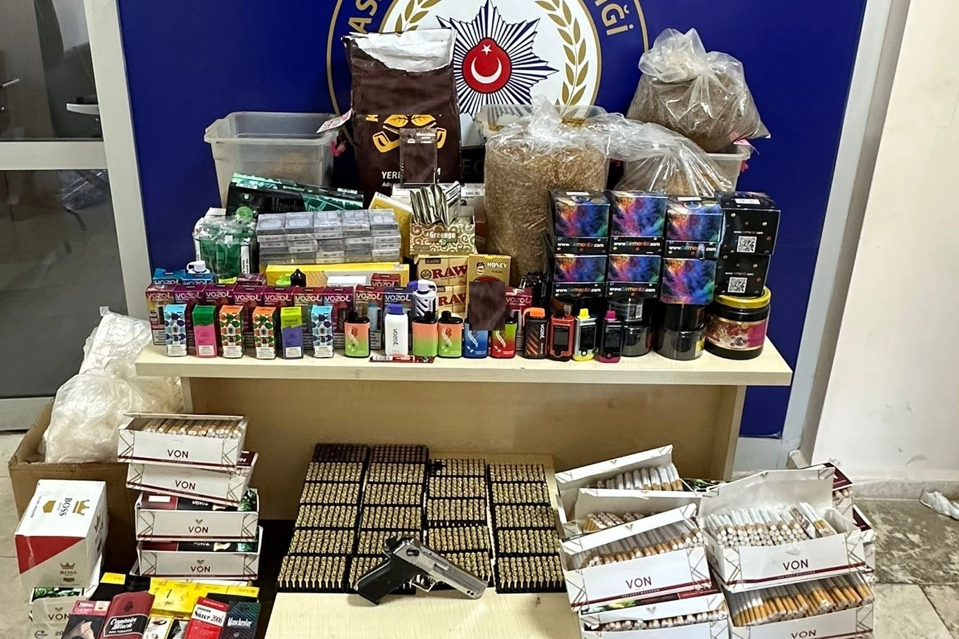 Alınan bilgiye göre, Anamur Cumhuriyet Başsaavcılığının yürüttüğü bir soruşturma kapsamında kaçakçılıkla mücadele ve 18 yaş altındakilere sigara ile tütün ürünleri satılmasına yönelik polis ekipleri çalışma yaptı. İlçe Emniyet Müdürlüğü Asayiş Büro Amirliği ekiplerinin çalışmasında belirlenen 3 şüpheli yakalandı. Yakalanan şüphelilerden toplamda 10 bin adet dolu makoron, 600 adet boş makaron, 226 paket kaçak sigara, 43 adet pro, 71 paket tütün, 40 adet elektronik sigara cihazı,34 kilogram kıyılmış tütün, 1 adet kurusıkı tabanca, bin 148 kurusıkı mermisi ve çeşitli elektronik sigara malzemeleri ele geçirildi.
