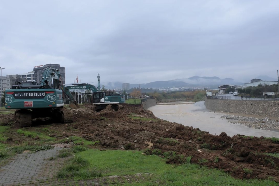 Büyükşehir Belediyesi Çevre Koruma ve Kontrol Dairesi Başkanlığı ekipleri de dere yataklarında yükselen suyun tahliyesi için iş makineleriyle çalışma yapıyor.