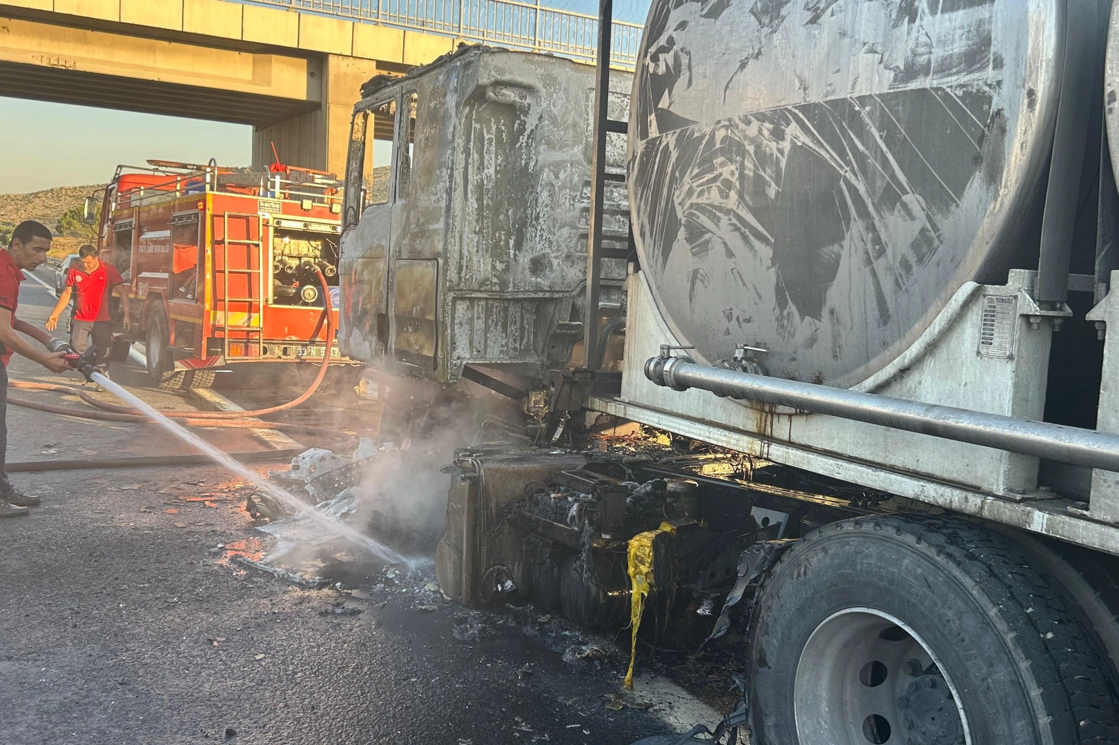Yangın, Tarsus-Ankara Otoyolu Kadelli mevkisinde meydana geldi. Barış T. idaresindeki 51 KZ 830 plakalı süt tankerinin kupa kısmında, henüz belirlenemeyen nedenle yangın çıktı. Araçtan yükselen dumanları fark eden sürücü, tankeri yol kenarına çekerek 112 Acil Çağrı Merkezi’ni arayıp yardım istedi.