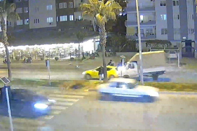 Öte yandan zincirleme kazanın meydana geldiği anlar, çevrede bulunan bir iş yerinin güvenlik kamerasına yansıdı. Görüntülerde, ticari aracın yaya geçidinde aniden fren yaparak durması ve ardından kamyonet ile arkasından gelen iki otomobilin çarpıştığı anlar yer aldı.