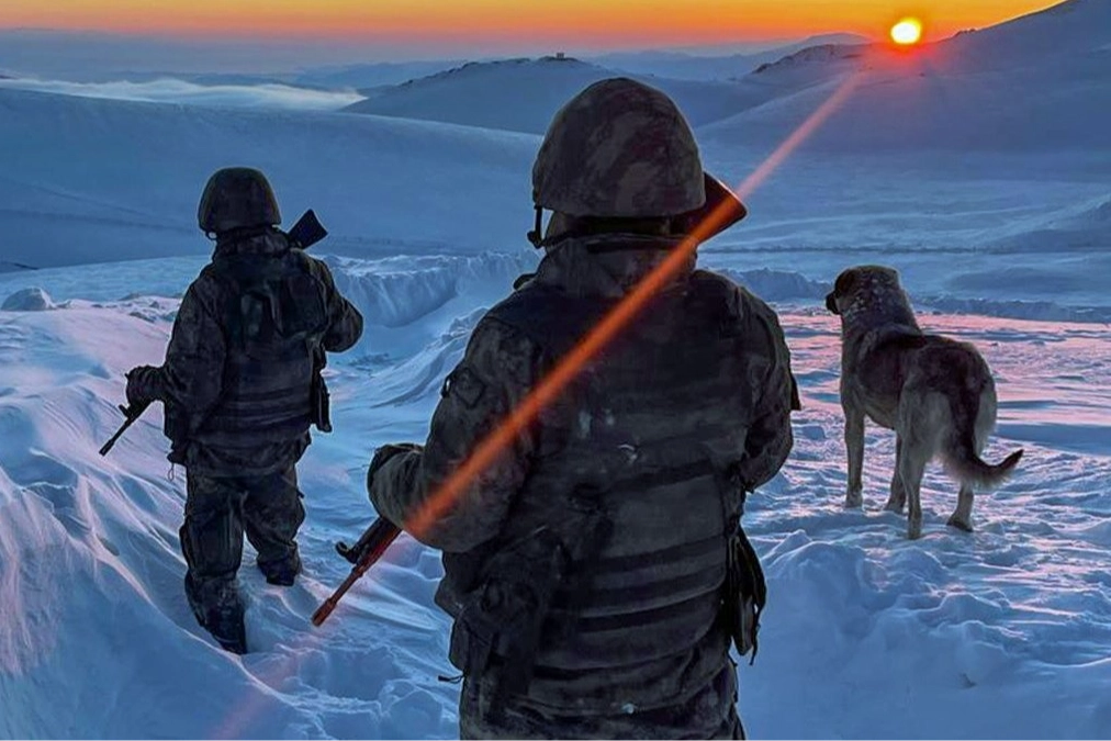 Bakanlık tarafından paylaşılan diğer karede ise kahraman askerlerimizin zorlu şartlar altında tuttuğu nöbete yer verildi.