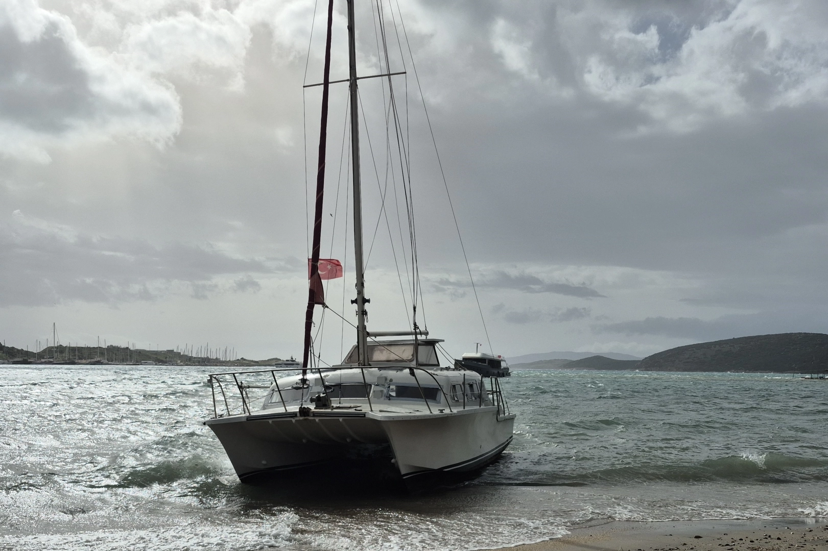 Bir süre sonra bir motoryat ile bir yelkenli daha sürüklenip kıyıdaki teknelerin üzerine doğru gitti. O sırada kıyıdaki teknede bulunanlar panik yaşadı. Sürüklenen tekneler de karaya vurup birbirine çarptı. Denizcilerin teknelerinin hasar almasını önlemek için verdiği çaba kameralara yansıdı.