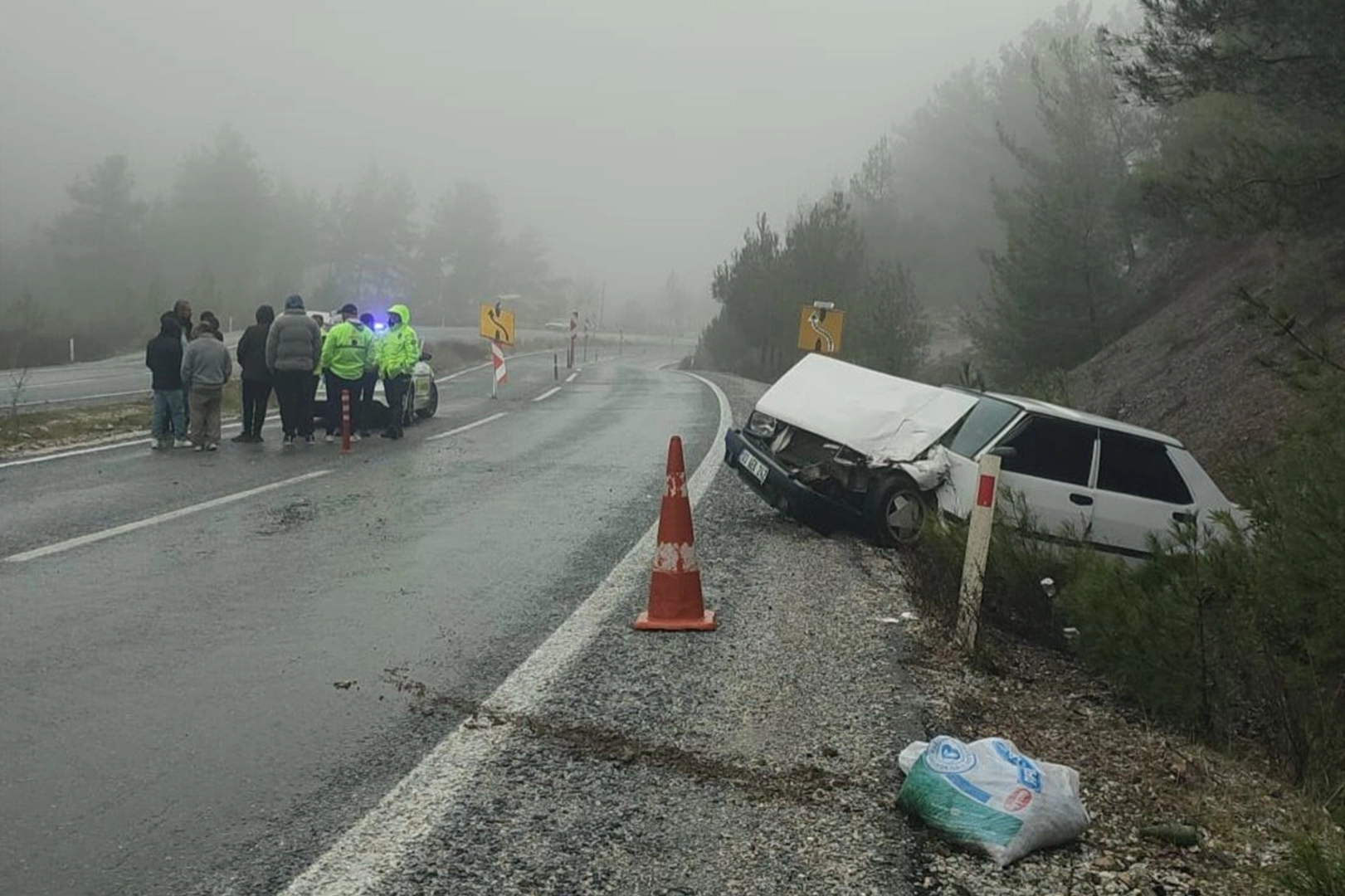 Edinilen bilgilere göre, Muğla-Denizli karayolu Gölcük Mahallesi mevkiinde seyir halinde olan otobüs ile Fiat Tofaş marka otomobil çarpıştı. Çarpışmanın etkisiyle otomobil kağıt gibi savrularak yol kenarında durabildi.