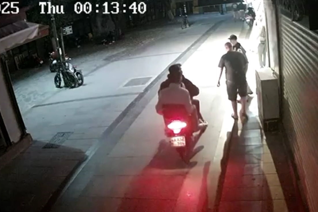 Turistlerin gasp edildiği anlar ise bölgedeki güvenlik kameralarına anbean yansıdı. Görüntülerde, yolda yürüyen 2 turiste, motosiklet ile yaklaşan 3 şüphelinin darp ve gasp etmesi ile turistlerin olay yerinden kaçışları yer aldı.