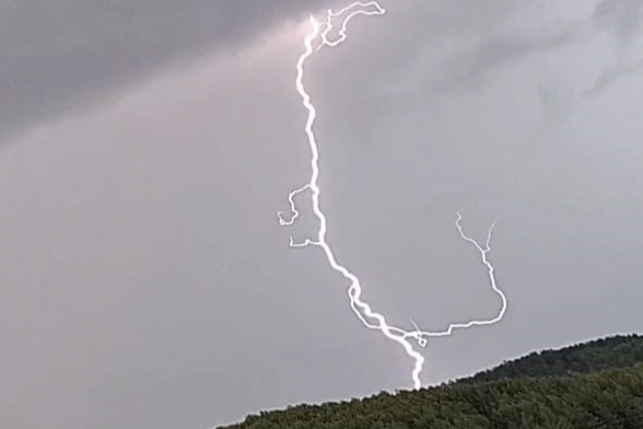 Muğla'nın Menteşe ilçesinde etkili olan gök gürültülü sağanak yağış sırasında dağa düşen bir şimşek, böyle görüntülendi.