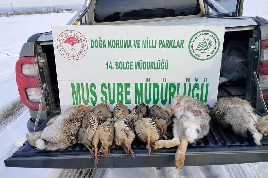 Muş Doğa Koruma ve Milli Parklar Müdürlüğü av koruma ekipleri, 7 Şubat'ta yaban hayvanlarını yemleme çalışmaları için yem üretim tesisine giderken Derecik genel avlağı sınırları içerisinde yer alan Tekyol köyü kırsalında 2 kişinin kaçak avlandığını tespit etti. Yapılan kontrollerde sınırlandırılmamış 2 adet av tüfeği, avlanmış 8 adet kınalı keklik ve 3 adet yaban tavşanına el konuldu. Şahıslar hakkında 59 bin 182 TL idari para cezası ve 31 bin 400 TL tazminat cezası olmak üzere toplam 90 bin 582 TL tutarında cezai işlem uygulandı.