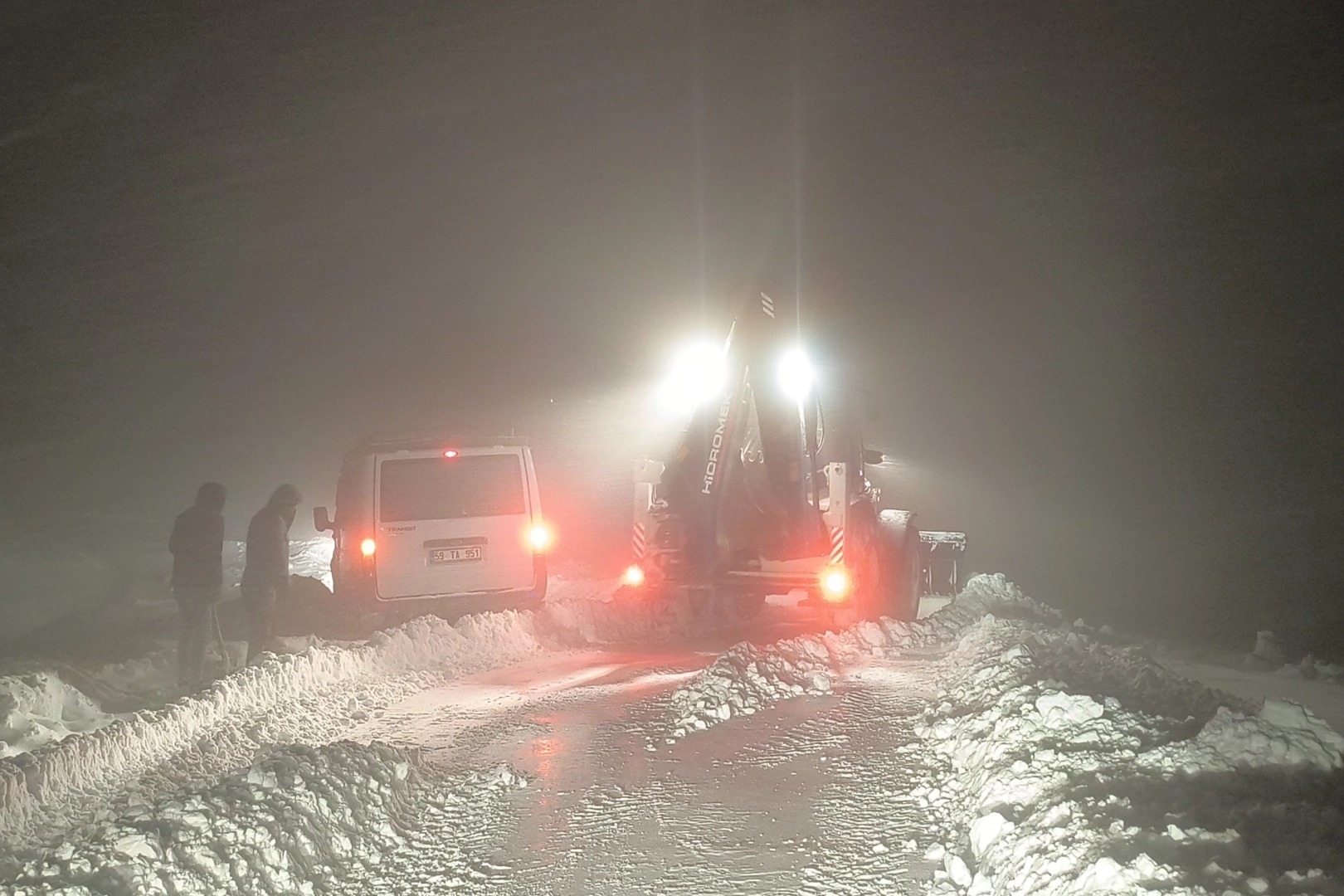 Muş’ta etkili olan yoğun kar yağışı ve fırtına, ulaşımı olumsuz etkiledi. 10 köy ile 20 mezraya ulaşımın sağlandığı Derecik-Üçevler Grup köy yolu Turna Dağı mevkisinde yolun kapanması sonucu iki araç içerisinde bulunan 7 kişi mahsur kaldı. İhbar üzerine bölgeye sevk edilen Muş İl Özel İdaresi ekipleri, zorlu hava şartlarına rağmen kapanan yolu açmak için çalışma başlattı. Yoğun kar ve tipi altında sürdürülen çalışmalar yaklaşık 3 saat sürdü. İl Özel idaresinde görevli iş makinesi operatörü Serhat Ekici ve Yakup Kandemir'in yoğun çabasıyla mahsur kalan araçlara ulaşılarak vatandaşlar güvenli alana alındı. Kurtarılan 7 vatandaşın sağlık durumlarının iyi olduğu öğrenilirken, vatandaşlar kendi araçlarıyla Muş merkeze döndü. İl Özel İdaresi ekipleri, bölgede benzer olumsuzlukların yaşanmaması için yol açma ve kontrol çalışmalarını sürdürdü.