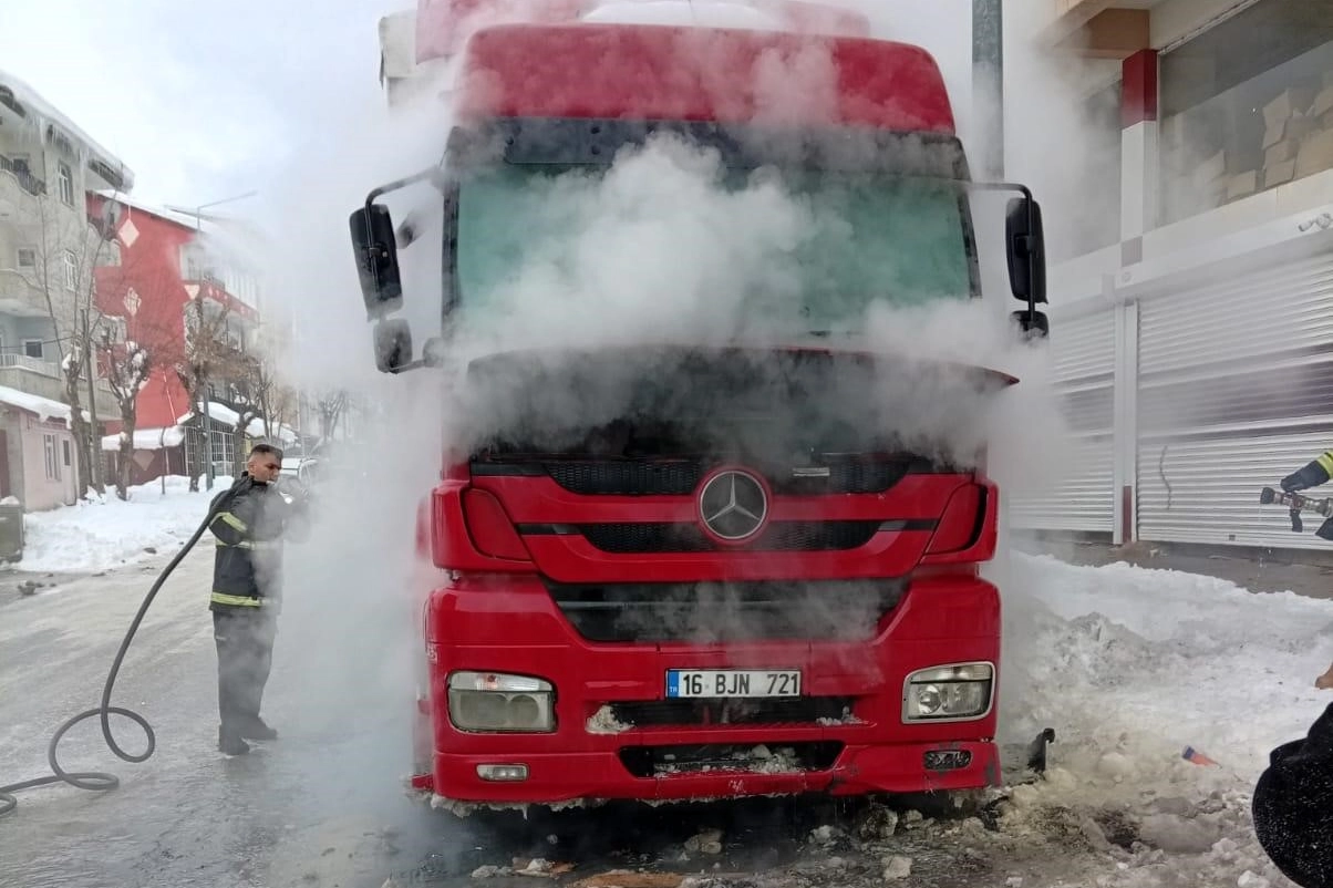 Muş’un 15 Temmuz Milli İrade Mahallesi’nde park halinde bulunan bir tırda çıkan yangın kısa süreli paniğe neden oldu. Edinilen bilgilere göre, 16 BJN 721 plakalı tırın motor kısmında sabah saatlerinde henüz belirlenemeyen bir nedenle yangın çıktı. Çevredeki vatandaşların durumu 112 Acil Çağrı Merkezi’ne bildirmesi üzerine olay yerine İtfaiye ekipleri sevk edildi. Kısa sürede bölgeye ulaşan ekipler, yangına müdahale ederek alevlerin tırın dorsesine sıçramasını önledi. İtfaiye ekiplerinin çalışmasıyla kontrol altına alınan yangın tamamen söndürülürken, olayda can kaybı ya da yaralanma yaşanmadı. Yangın nedeniyle tırda maddi hasar meydana gelirken, çıkış nedeni ile ilgili inceleme başlatıldı.