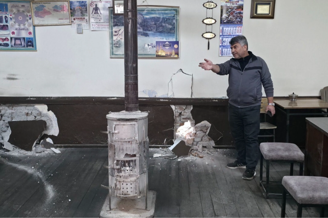 Devam eden yıkım esnasında, faaliyetine devam eden bir çay ocağının duvarları iş makinesi tarafından yanlışlıkla yıkıldı.