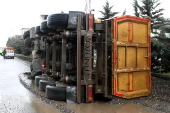 Kaza, Ünye Çevreyolu Karşıyaka Mahallesi üzerinde meydana geldi. Edinilen bilgiye göre, Fatsa istikametine seyir halinde olan İzzet Acar'ın kullandığı 55 AAT 402 plakalı çakıl yüklü kamyon, sürücüsünün kontrolünden çıkarak yol kenarındaki bariyerlere devrildi. Kazada, tonlarca çakıl yola döküldü. Olay yerine sevk edilen sağlık ve polis ekipleri, kamyon sürücüsünün yaralanmadığını belirledi. Karayolları ekipleri, yola saçılan çakılları temizlemek için çalışma başlattı. Kamyon, olay yerine çağrılan çekici yardımıyla 2 saat süren bir çalışma ile kaldırıldı.
