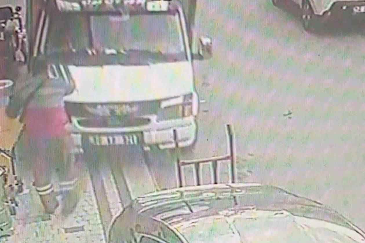 Öte yandan, kaza anı bir iş yerinin güvenlik kamerasına yansıdı. Görüntülerde, kamyonet sürücüsünün kaldırıma çıktığını gören çevredeki esnafın paniklediği görüldü.