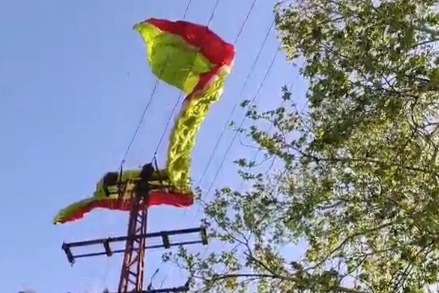 Öte yandan, olay nedeniyle bölgede kısa süreli elektrik kesintisi yaşanırken, Düziçi Belediyesi itfaiye ekipleri hatta takılı paraşütü indirdi.