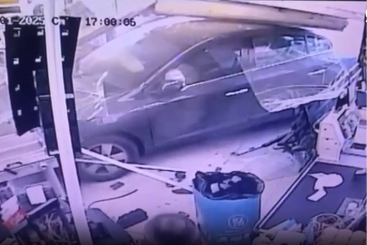 Araç, bir marketin girişindeki cama çarpıp içeri girerek durabildi.