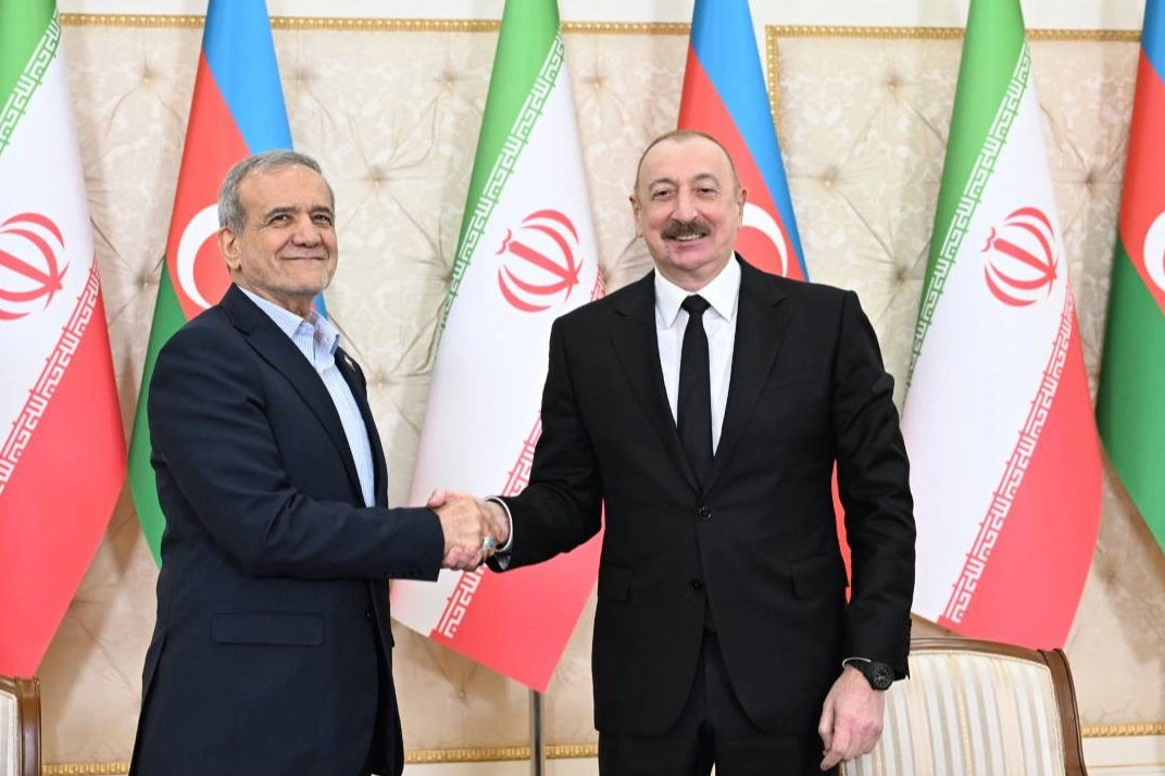 İran Cumhurbaşkanı Mesud Pezeşkiyan, Azerbaycan’ın başkenti Bakü’ye düzenlediği resmi ziyarette Azerbaycan Cumhurbaşkanı İlham Aliyev ile heyetler arası görüşme gerçekleştirdi. Görüşmede Azerbaycan ve İran hükümet yetkililerinin son aylarda birbirleriyle yakın temaslarda bulunduklarını hatırlatan Aliyev, "Birçok sorun çözüldü. Ziyaretinize hazırlık kapsamında pek çok konu da görüşüldü. Bugün önemli belgeler imzalanacak ve alınacak kararlar iki kardeş halkı birbirine daha da yakınlaştıracak" dedi. "Karabağ Azerbaycan’ın ayrılmaz bir parçasıdır"