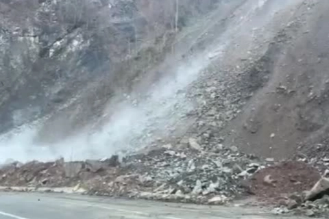 Yol kenarında bulunan elektrik direği de toprak altında kaldı. İhbar üzerine bölgeye Karayolları ve jandarma ekipleri sevk edildi.