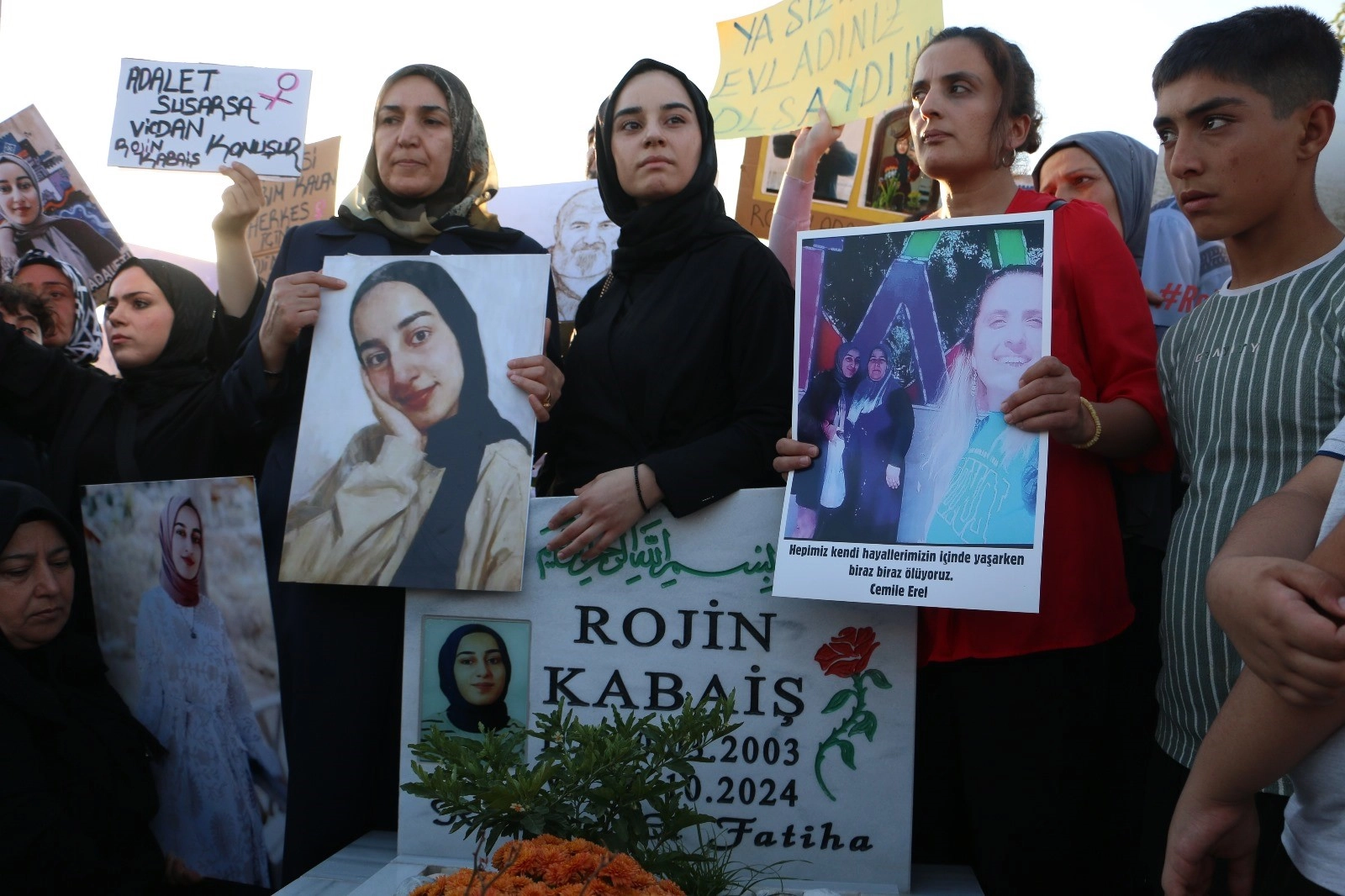 Rojin Kabaiş'in mezarında açıklama yapan kardeşi Elif Kabaiş, ablasının ölümünün üzerinden 1 yıl geçtiğini söyleyerek, "Gençliğini, hayallerini, geleceğini elimizden aldılar. O günden beri içimizdeki yangın sönmedi. Rojin intihar etmedi. Bu ifadeyi söylüyorum çünkü biz o kızın hayatını, umutlarını, hayallerini, geleceğini biliyoruz. Çünkü ben onun kız kardeşiyim. Çünkü o benim oda arkadaşımdı. O gencecik bedeni ve hayalleri yok eden kimse adalet önünde hesap verecekler" dedi.