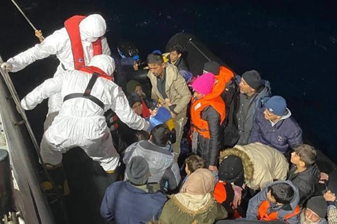 Sahil Güvenlik Komutanlığı ekipleri "TCSG-61" gemisiyle bölgeye ulaşarak 48 düzensiz göçmeni yakalayıp karaya çıkardı.