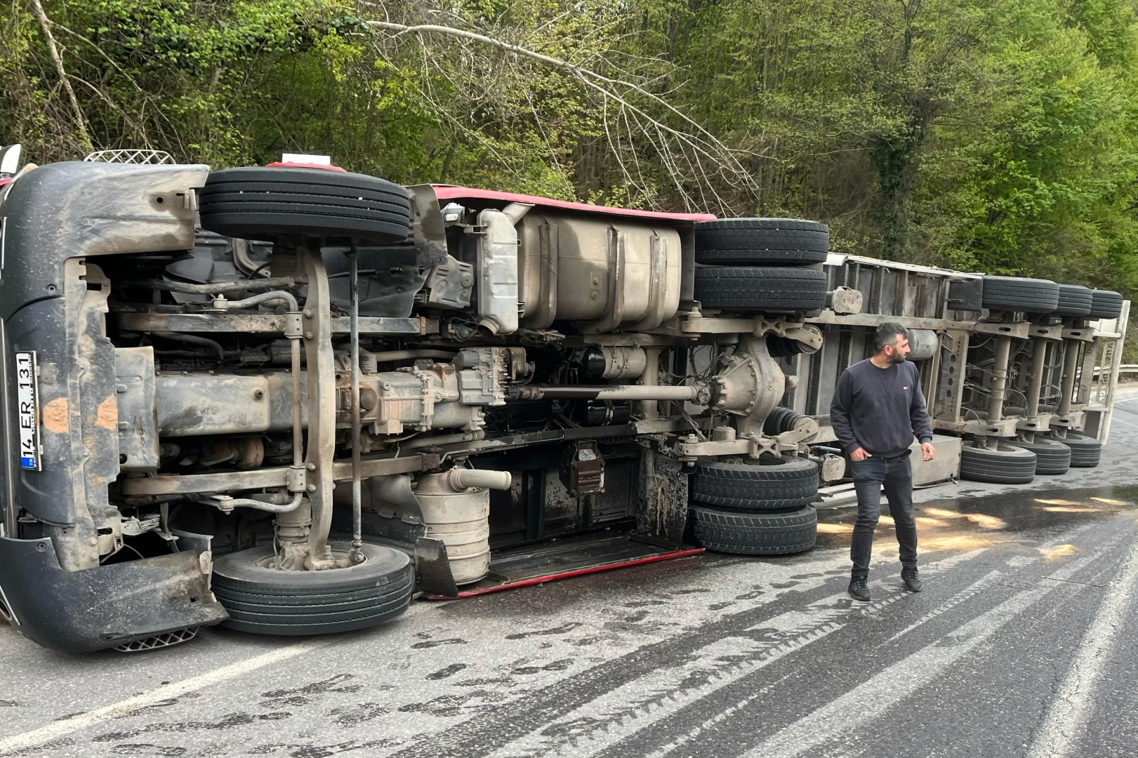 Kaza, akşam üzeri Akyazı-Mudurnu D-140 kara yolu Reşadiye mevkiinde meydana geldi. Edinilen bilgiye göre, E.K. kontrolündeki 14 ER 131 plakalı tır, viraja girdiği esnada sürücüsünün kontrolünden çıkarak devrildi. Çevredekilerin durumu 112 Acil Çağrı Merkezi'ne bildirmesi üzerine bölgeye itfaiye, sağlık ve jandarma ekipleri sevk edildi. Adrese ulaşan ekiplerce araç içerisinden çıkarılan yaralı sürücü E.K., yapılan ilk müdahalesinin ardından hastaneye kaldırıldı.