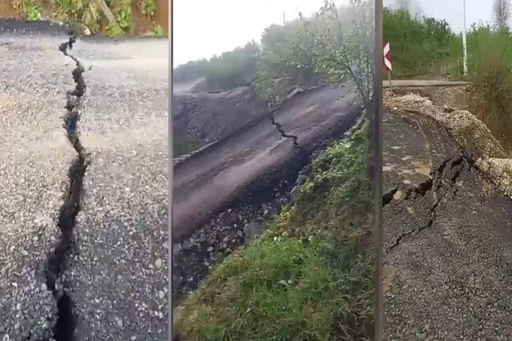 Sarı'nın çektiği görüntülerde yeni asfalt yolun çatlayıp ayrıldığı, yolun yan tarafındaki fındık bahçesinde toprak kaymalarının olduğu görüldü.