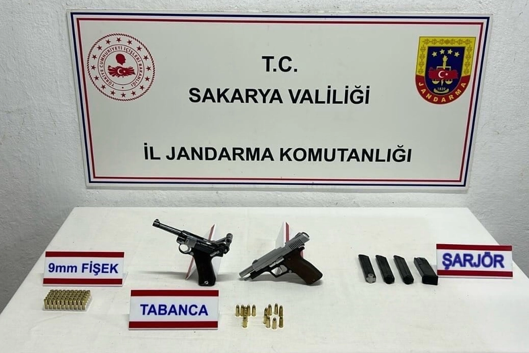 Sakarya İl Jandarma Komutanlığı’na bağlı ekipler, sorumluluk bölgesinde suçun önlenmesine yönelik çalışmalarına devam ediyor. Kaçakçılıkla mücadele çerçevesinde yürütülen operasyonda Adapazarı ilçesinde M.E. (48) isimli şahsın ikametgahında yapılan aramalarda; Sig Sauer marka P229 model 1 adet tabanca, Alman Luger-Gesichert marka 1 adet tabanca ve 65 adet 9 mm çapında fişek bulundu. Gözaltına alınan şüpheli, tamamlanan adli işlemlerinin ardından tutuklanarak cezaevine teslim edildi.