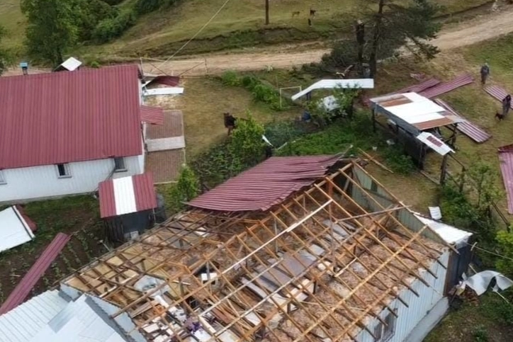 Sakarya'da yaylada şiddetli rüzgar ağaçları devirdi, çatıları uçurdu