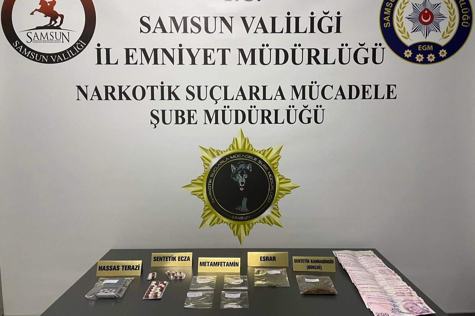 Çarşamba İlçe Emniyet Müdürlüğü Narkotik Suçlarla Mücadele Şube Müdürlüğü ekipleri, Sarıcalı Mahallesi’nde S.H. isimli şahsın üstünde ve ikametinde arama yaptı. Yapılan aramalarda; 2,62 gram metamfetamin, 8,60 gram sentetik kannabinoid, 24 adet sentetik ecza hap, 0,40 gram kubar esrar, 1 adet hassas terazi ve 14 bin 705 TL uyuşturucu madde ticaretinden elde edildiği değerlendirilen para ele geçirildi.
