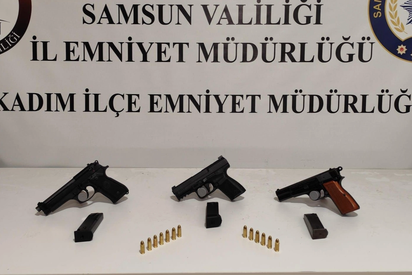 Edinilen bilgiye göre, İlkadım İlçe Emniyet Müdürlüğüne bağlı devriye gezen sivil ekipler, Toybelen Mahallesi'nde duydukları silah seslerinin izini sürdü. Silah seslerinin bir düğün merasiminden geldiğini tespit eden ekipler, araçlarını uzak bir noktaya bırakarak, misafir gibi düğün alanına girdi. Kalabalık arasında bellerinde tabanca olan 2 kişiyi fark eden polisler, hızlıca yanlarına giderek şahısları gözaltına aldı. Yapılan ircelemede M.K. isimli şahıstan 1 adet bulundurma ruhsatlı tabanca, A.K. isimli şahıstan ise 2 adet ruhsatsız tabanca ve 13 adet fişek ele geçirildi. Polis merkezine götürülen 2 kişi hakkında adli işlem başlatıldı.
