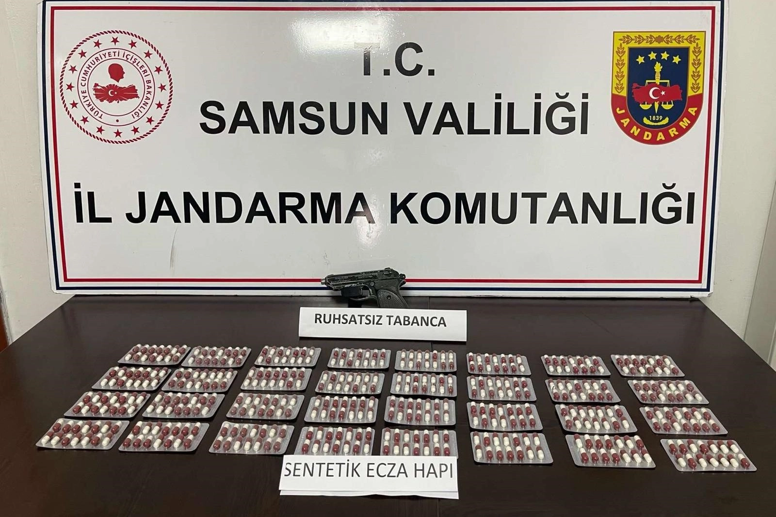 Edinilen bilgiye göre, Samsun'un İlkadım ilçesinde jandarma ekiplerinin yaptığı araştırmada Y.S. isimli şahsın evinde uyuşturucu madde bulundurduğu bilgisi alındı. Samsun İl Jandarma Komutanlığı Kaçakçılık ve Organize Suçlarla Şube Müdürlüğü, İstihbarat Şube Müdürlüğü, İlkadım İlçe Jandarma Komutanlığı ve Jandarma Suç Araştırma Timi ekiplerinin ortak çalışmaları neticesinde şahsın evine operasyon düzenlendi. Yapılan aramada 450 adet sentetik ecza hap ve 1 adet ruhsatsız tabanca ele geçirildi.