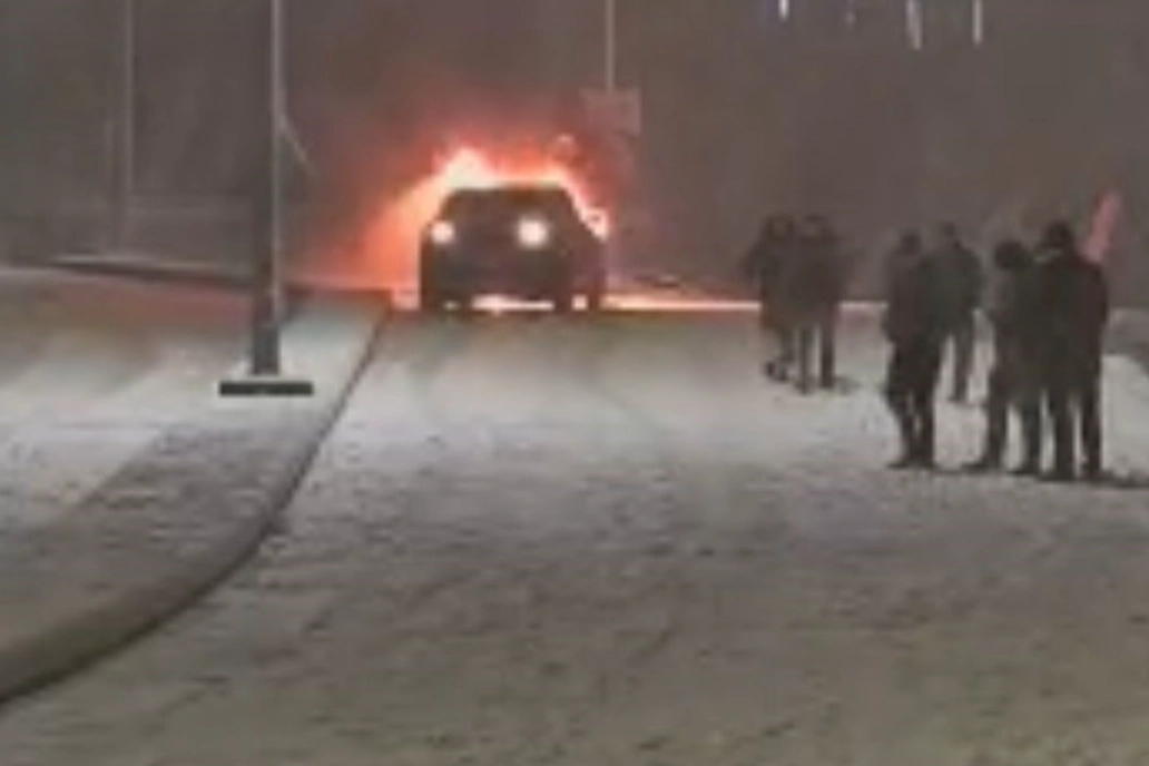 Canik ilçesi Yeni Bulvar yolunda yokuş yukarı çıkan ve karla kaplı yolda ilerlemekte zorlanan cipten bir anda dumanlar yükselmeye başladı. Kısa sürede alevler tüm aracı sardı. Durumu fark eden sürücü aracı yol kenarına çekerek dışarı çıktı.