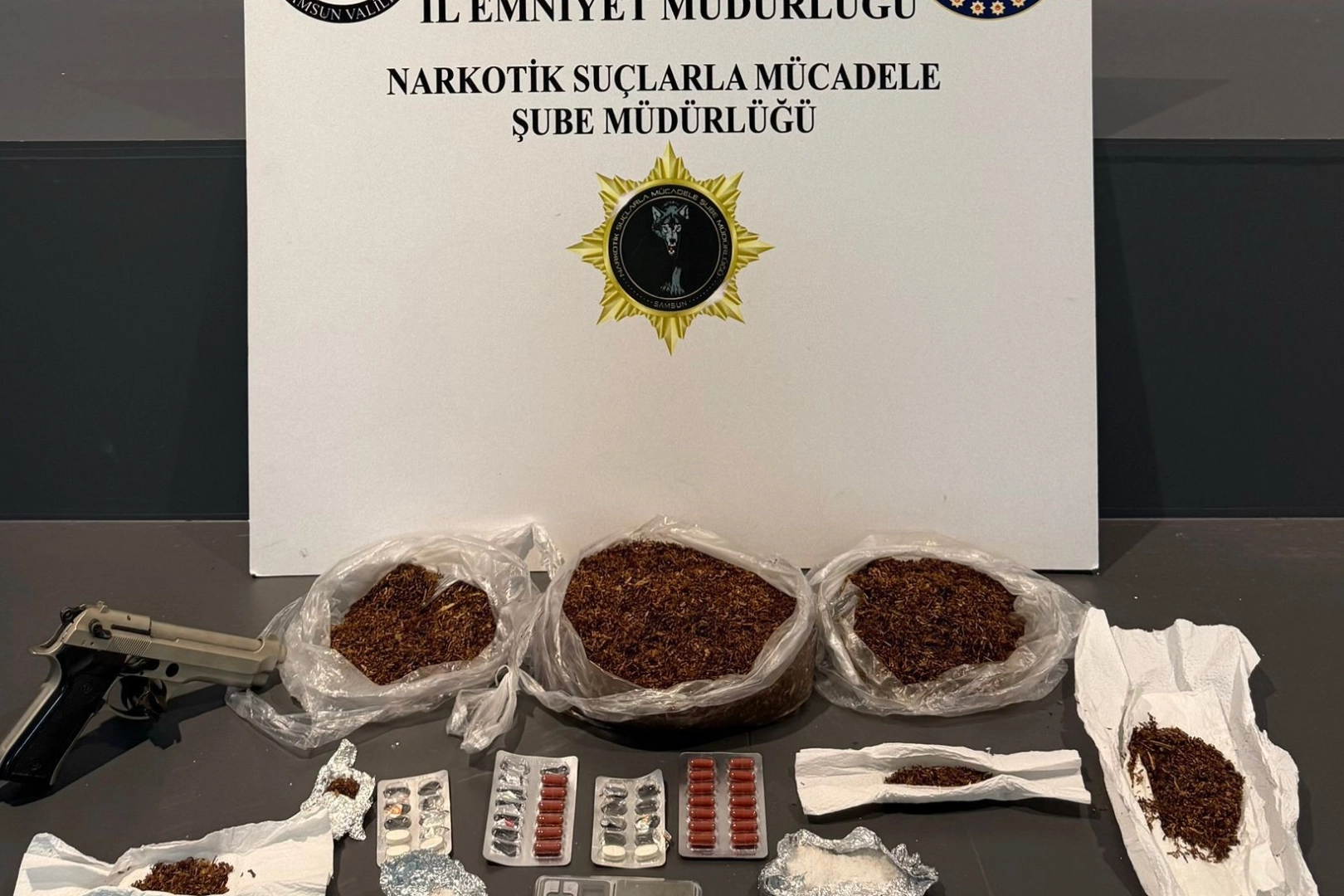 Edinilen bilgiye göre, Samsun İl Emniyet Müdürlüğü Narkotik Suçlarla Mücadele Şube Müdürlüğü ve İlkadım İlçe Emniyet Müdürlüğü ekiplerince yürütülen çalışmalar çerçevesinde, uyuşturucu madde ticareti yaptığı tespit edilen H.Ç.(50) ile E.Ö.(39) adlı kadın gözaltına alındı. Söz konusu şahısların ikametinde yapılan aramalarda, 1 kilo 35 gram bonzai (sentetik kannabinoid), 7,28 gram metamfetamin, 25 adet sentetik ecza, 1 adet hassas terazi ve 1 adet kurusıkı tabanca ele geçirildi. Narkotik polisi tarafından gözaltına alınan H.Ç. ile E.Ö. çıkarıldıkları marketten tutuklanarak cezaevine gönderildiler.