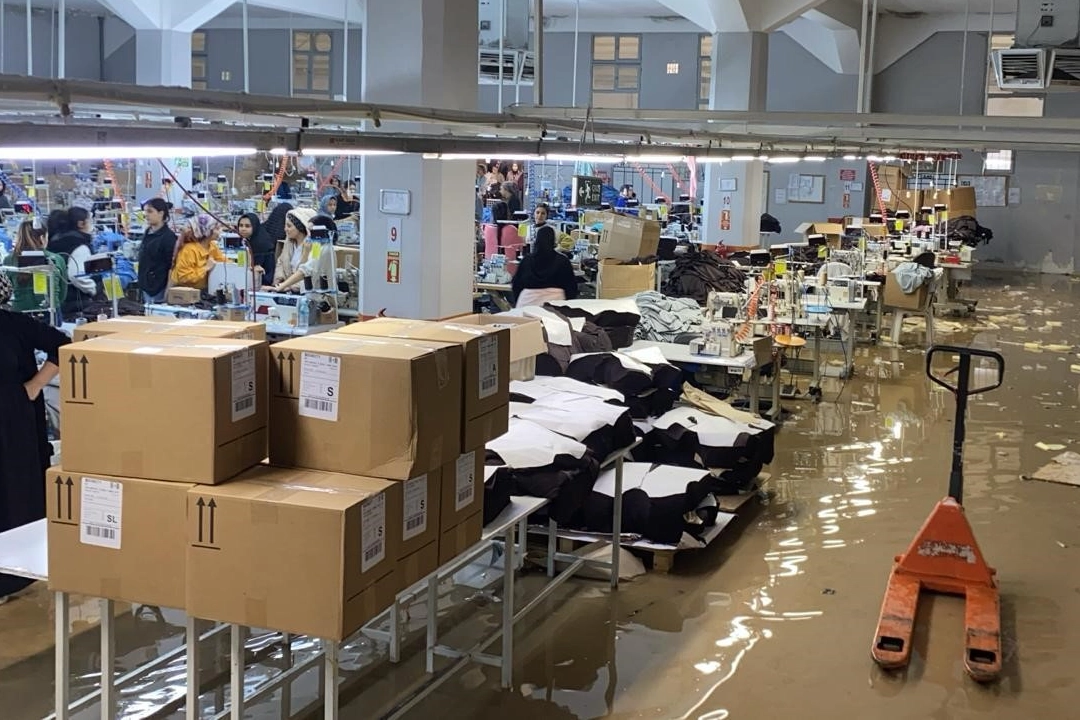 Yağış nedeniyle cadde ve sokaklarda su birikintileri oluştu. Şiddetli yağış sonrası bir tekstil fabrikasını su bastı. Fabrikada bulunan işçiler, biriken suyu tahliye etmek için uzun süre çalışma yürüttü.