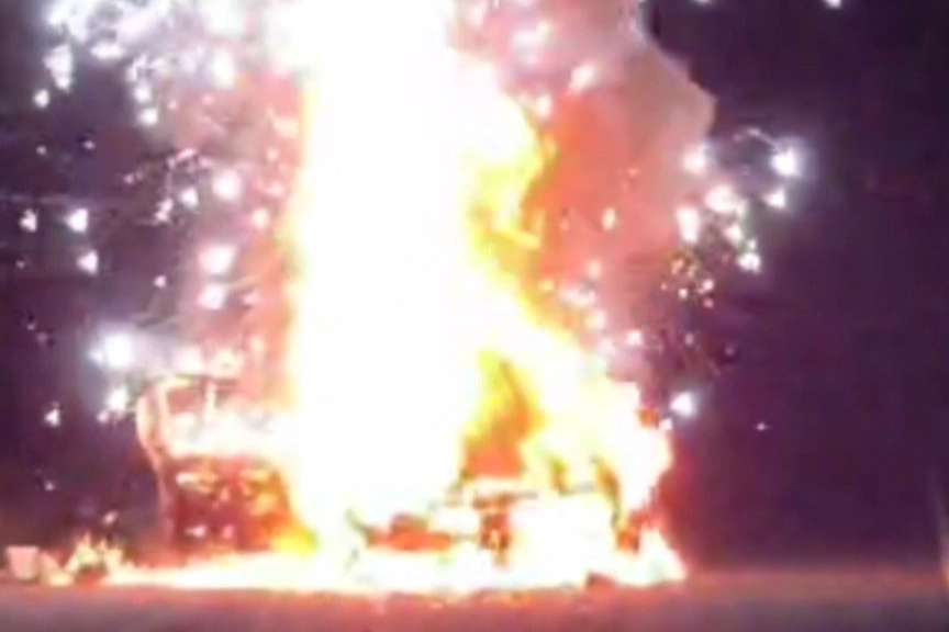 Kaza sonrası pikap sürücüsünün olay yerinden uzaklaştığı iddia edilirken, çarpışmanın etkisiyle otomobilde yangın çıktı. Alevler kısa sürede büyürken, araçta art arda patlamalar meydana geldi.