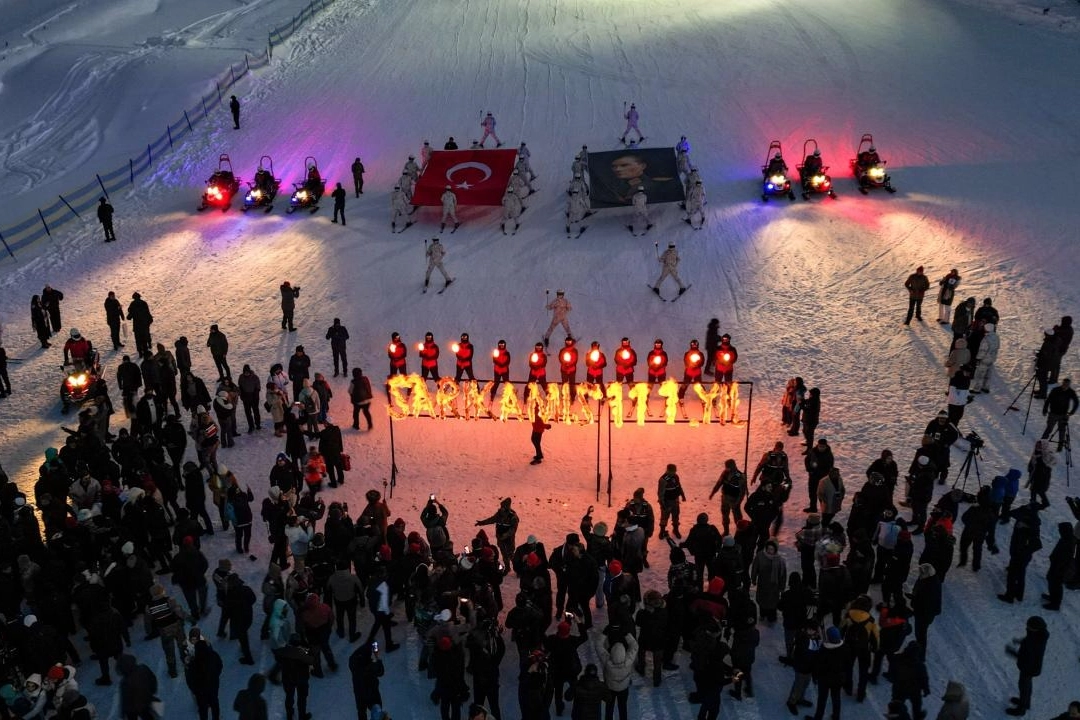 Sarıkamış Kayak Merkezi'nde düzenlenen etkinlikte, Çanakkale'deki 57. Alaya ithafen Sarıkamış'ta konuşlanan 57. Komando Taburu'nda görevli komandolar ve JAK timleri, ellerinde Türk bayrakları ve Atatürk posterleri taşıyarak meşalelerle zirveden indi.