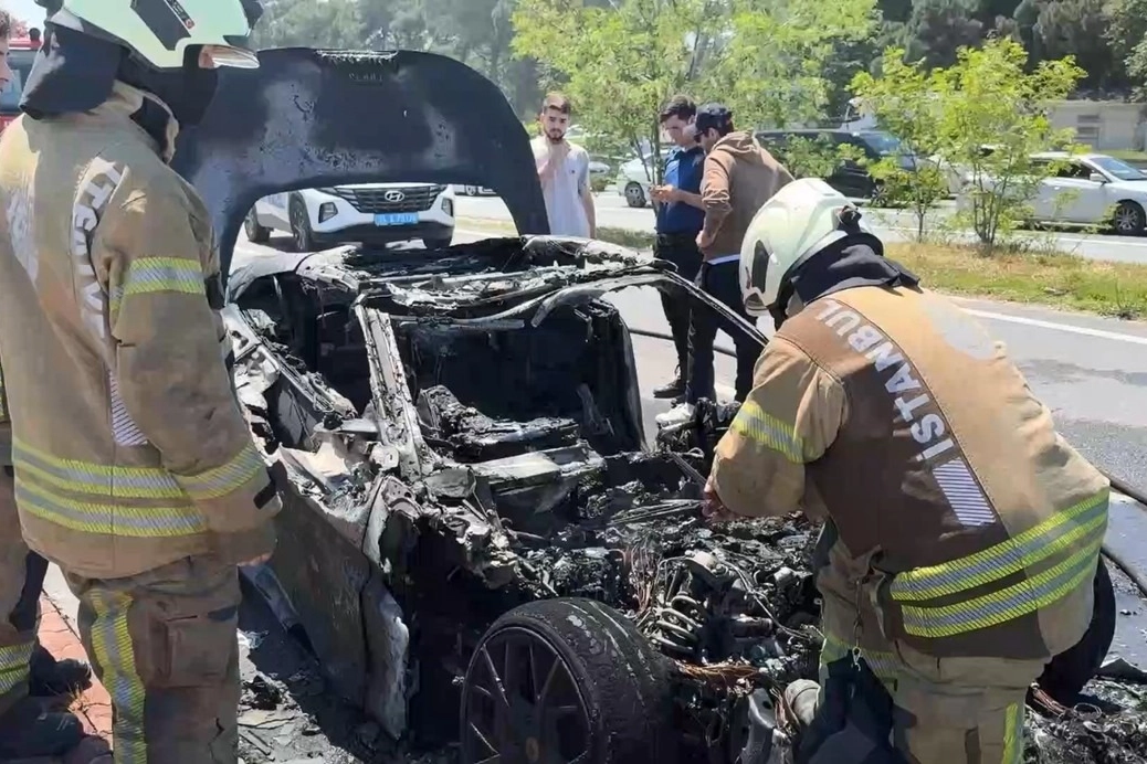 İstanbul'daki olay, saat 13.00 sıralarında Eyüpsultan Hasdal-Kemerburgaz yolunda sıralarında meydana geldi. Edinilen bilgiye göre, seyir halindeki lüks otomobil, henüz bilinmeyen bir nedenle motor kısmından yanmaya başladı.