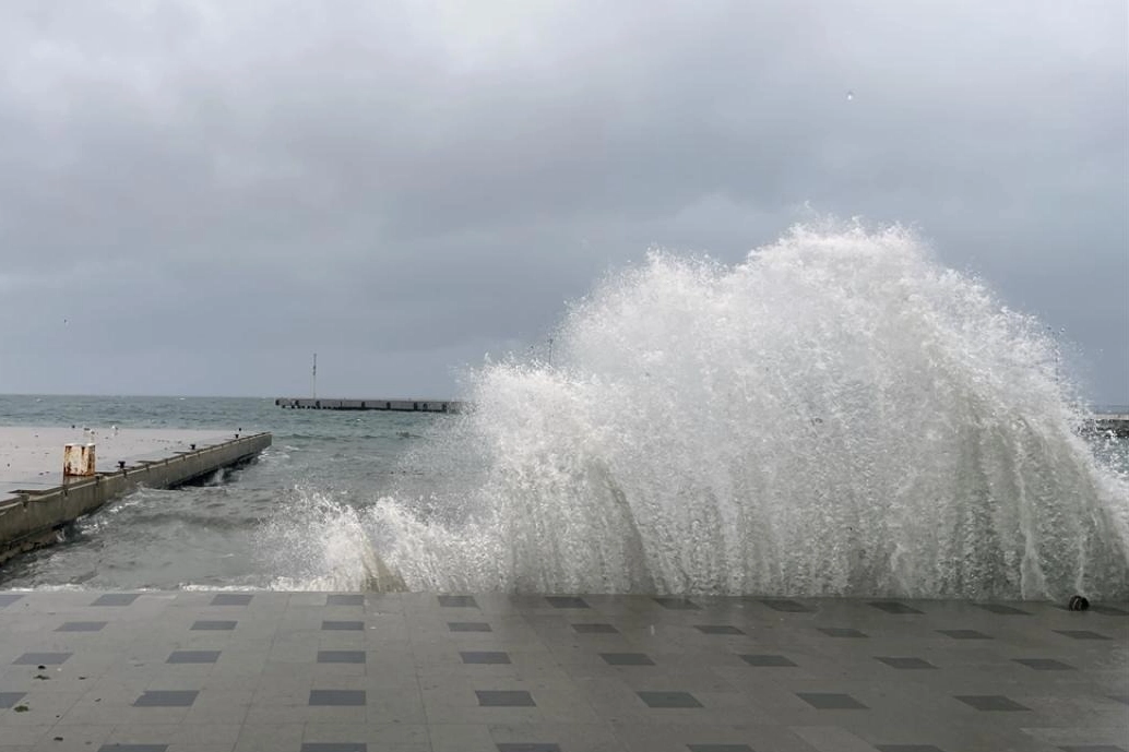 Kuvvetli rüzgarda sahilde yüksekliği 4 metreyi bulan dalgalar meydana geldi.