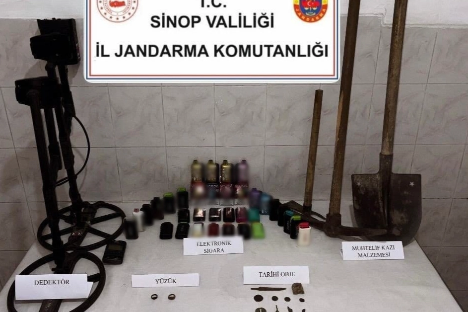 Sinop İl Jandarma Komutanlığı ekipleri, tarihi eser kaçakçılığı yapan şahıslara yönelik yürüttükleri çalışmalar kapsamında Durağan ilçesinde arama yaptı. Yapılan aramada; 28 adet elektronik sigara, 2 yüzük, 4 madeni para, 1 hançer, 5 tarihi obje, 2 dedektör ve çeşitli kazı malzemeleri ele geçirildi. Olayla ilgili gözaltına alınan 1 şahıs hakkında işlem başlatıldı.